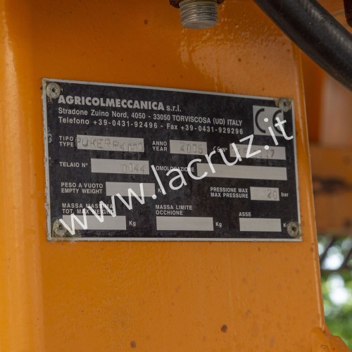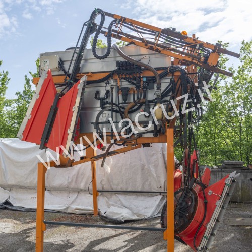 Macchina dotata di cisterna in acciaio inox da 40 HL, 4 ventole idrauliche, serbatoio lavamani, serbatoio lavaimpianto, manometro pressione impianto, indicatore livello prodotto in cisterna, pompa di irrorazione, valvola a due vie lavaggio circuito/irrorazione, filtro di aspirazione.