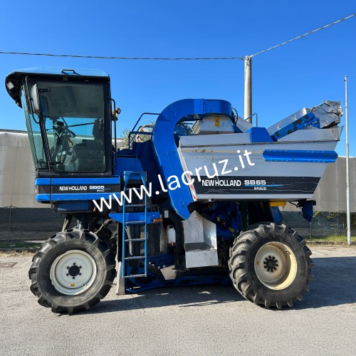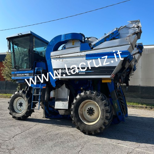 Macchina equipaggiata con 2 aspiratori inferiori, 2 aspiratori superiori, 2 diraspatori con catenarie maglie standard, guida palo, bielle in metallo, 9 scuotitori per lato, pompa lavaggio centralizzato e cabina climatizzata. Possibilità adattamento del kit olive.