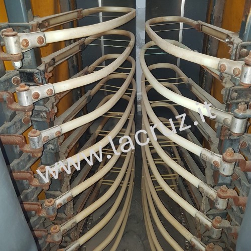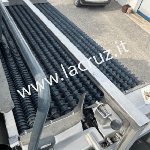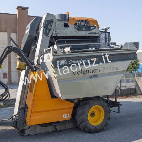 Macchina equipaggiata con sistema Selectiv' Process, due aspiratori inferiori, 9 scuotitori per lato, catenarie a griglie e tazze e joystick incorporato a schermo.